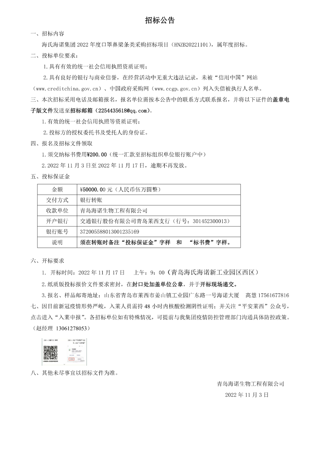 招标公告 | 尊龙·Z6集团 2022 年度口罩鼻梁条类采购招标项目正式开启